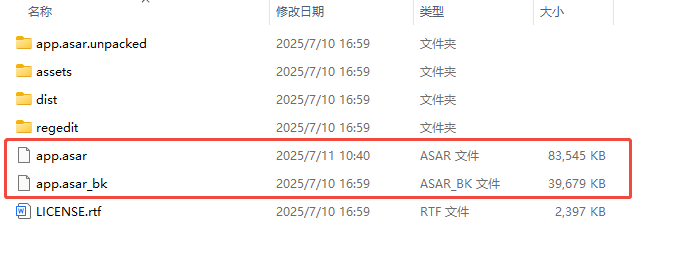 app.asar文件,为了防止操作失误,建议先将其重命名(比如改成app.asar_bak),或者复制一份存到其他地方。替换汉化文件:将下载好的对应汉化文件(比如 Windows x64 芯片对应的